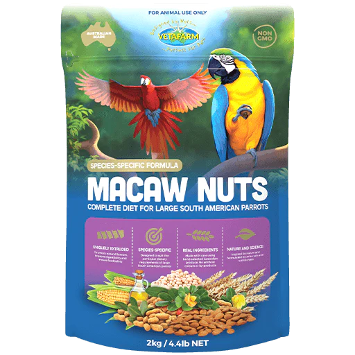 Nutritious healthy food including pellets, sprouts, nuts in shell, seeds, cooked food, muffins, treats and more. Variety is the key, so providing your birds with a selection of different foods, including fresh fruit & vegetables daily, will help keep your bird healthy.