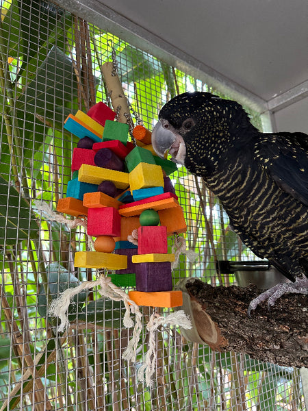 A toy designed to captivate and satisfy the playful nature of your small to medium parrot.