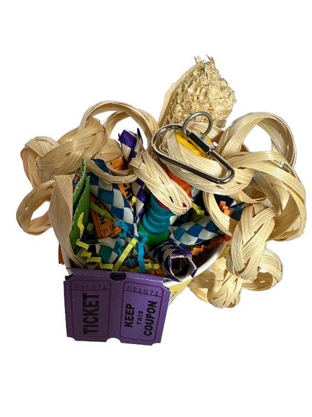 Hide your bird treats amongst the shredded paper and bamboo sticks.